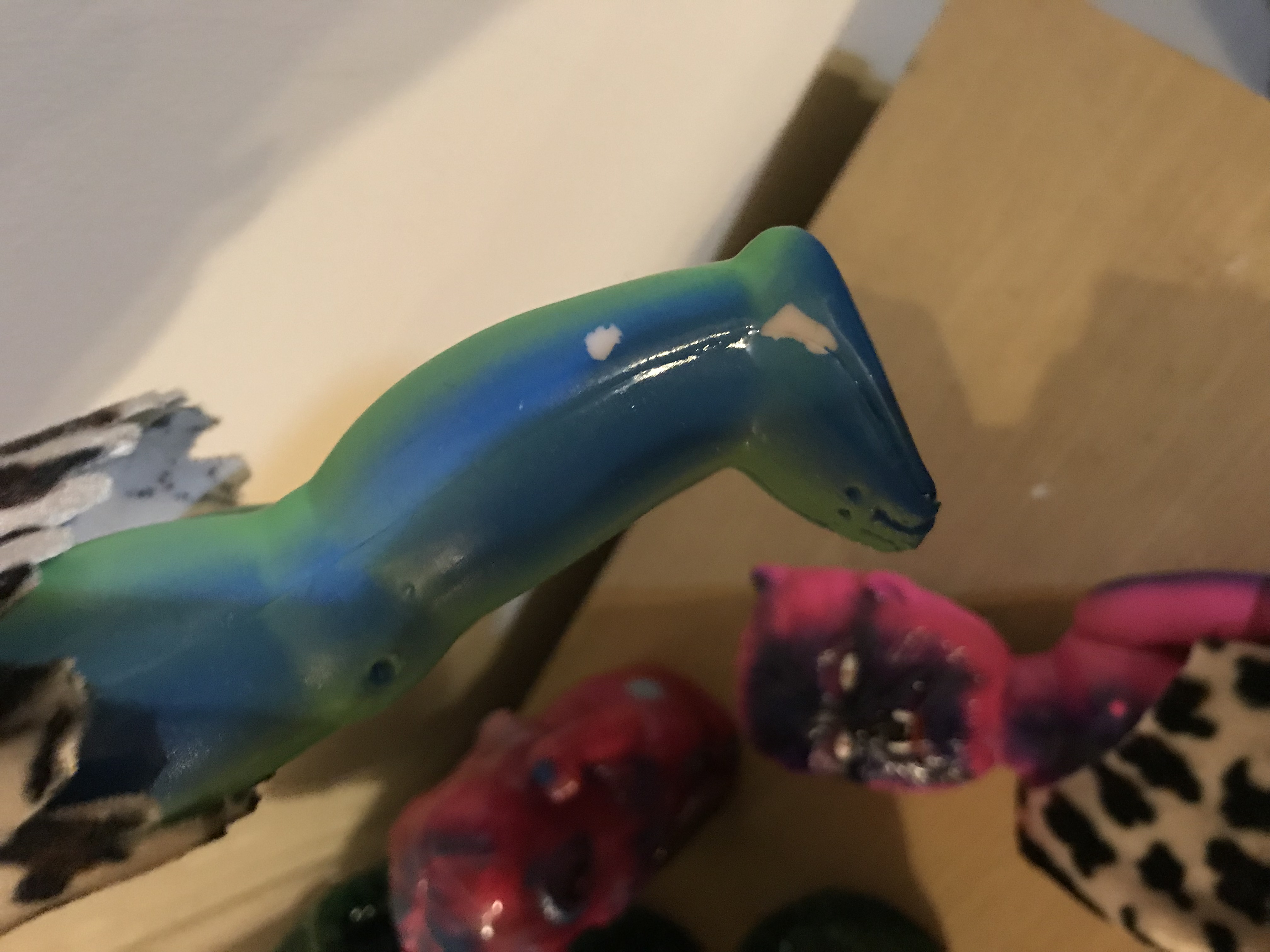 two paint chips happened to the creature during production, they have been clear coated and can be considered battle scares.