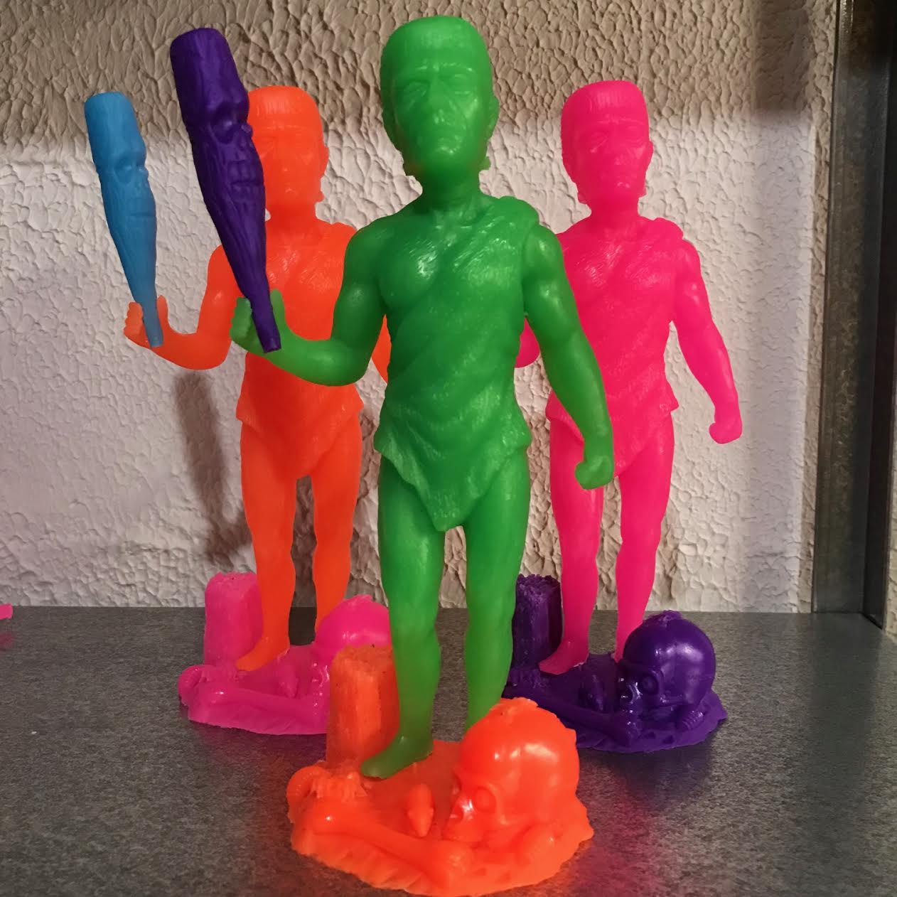 A throw back to the dawn of time or the hey day of garage kits Just under 9"tall, fits right in with your Auroras. 3 pieces of solid cast resin, figure, club and base. Sold blind bagged mixed parts.