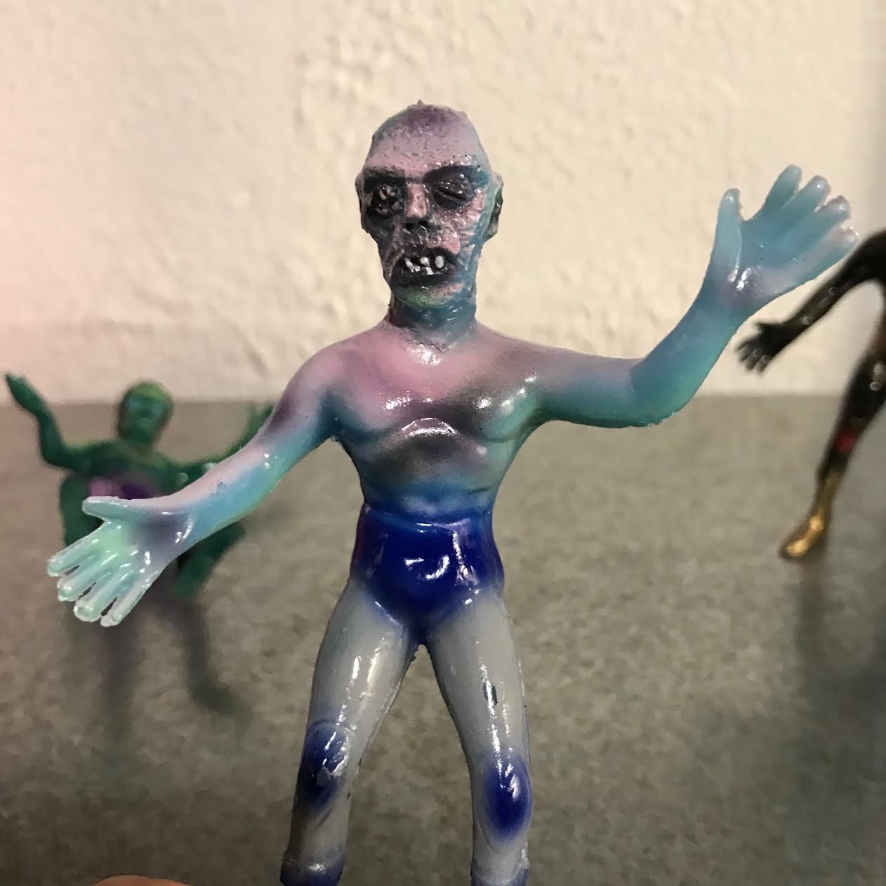 Watch out pencil neck geeks! Astro Zombie, Frankenstein, and the Fulci zombie are ready to rumble. Figures stand around 4.5" tall and are solid cast resin full painted and sealed with a gloss clear coat. This is the first wave in an ongoing series