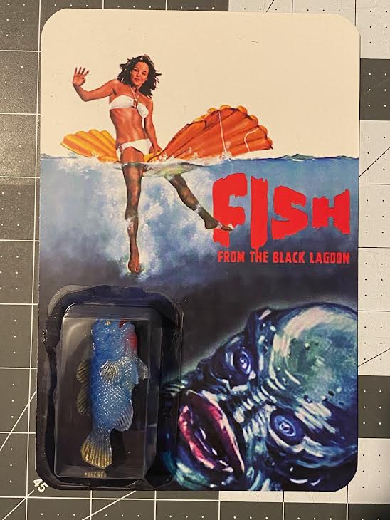 I little over 2 inches long, solid cast hand painted resin fish monster, come carded and ready for display. Who didn't love this movie!?
