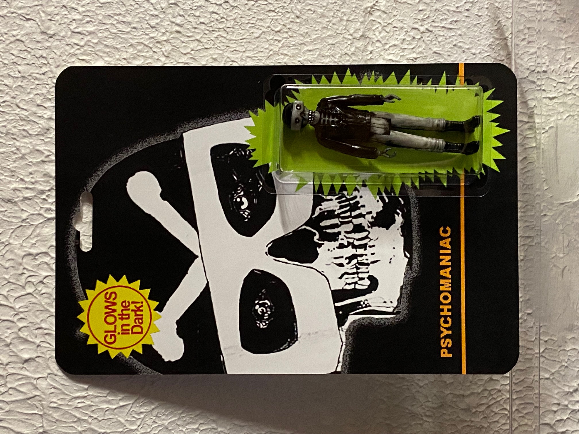 Glow in the dark. 3.75" custom Psychomania static figure, comes in display blister card.
