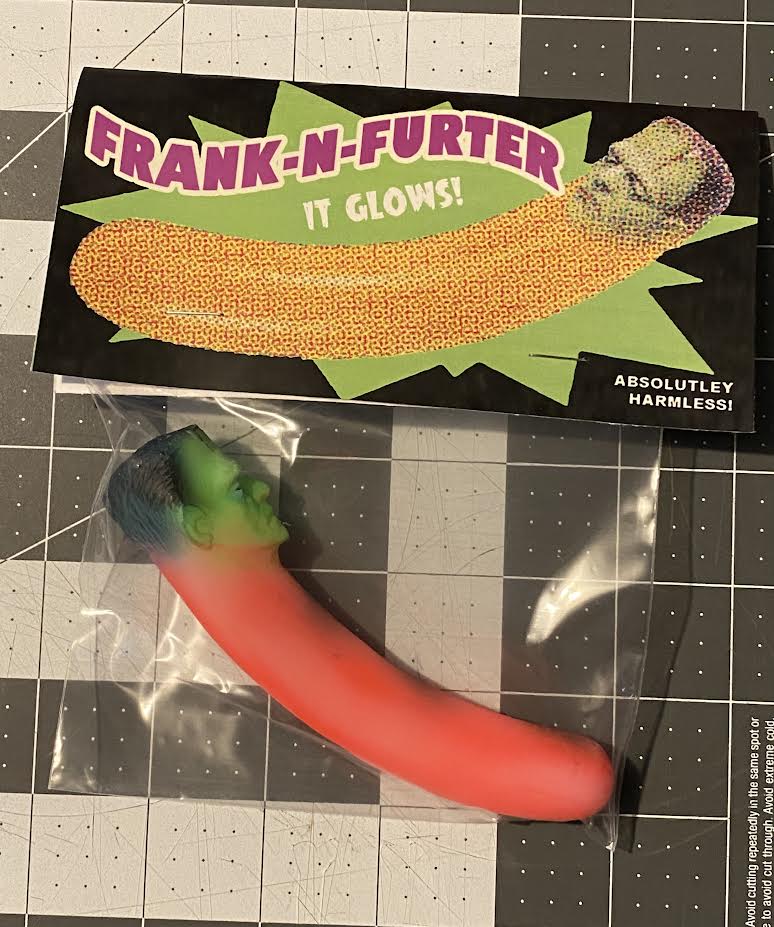 5" long novelty hot dog with the head of Frankenstein, the title says it all. Cast in solid glow in the dark resin and hand painted