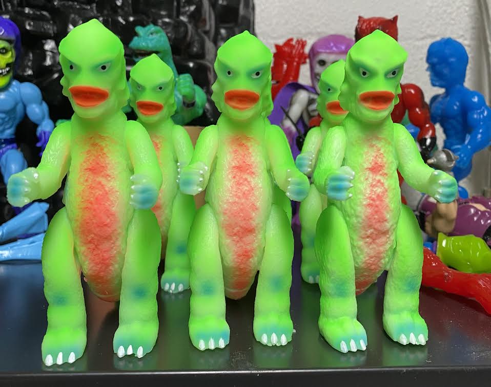 4.5" of scales rising out of the black lagoon to terrorize the neighborhood. Solid cast glow in the dark resin and handprinted creechzilla will fit right in with the rest of your cool collection.