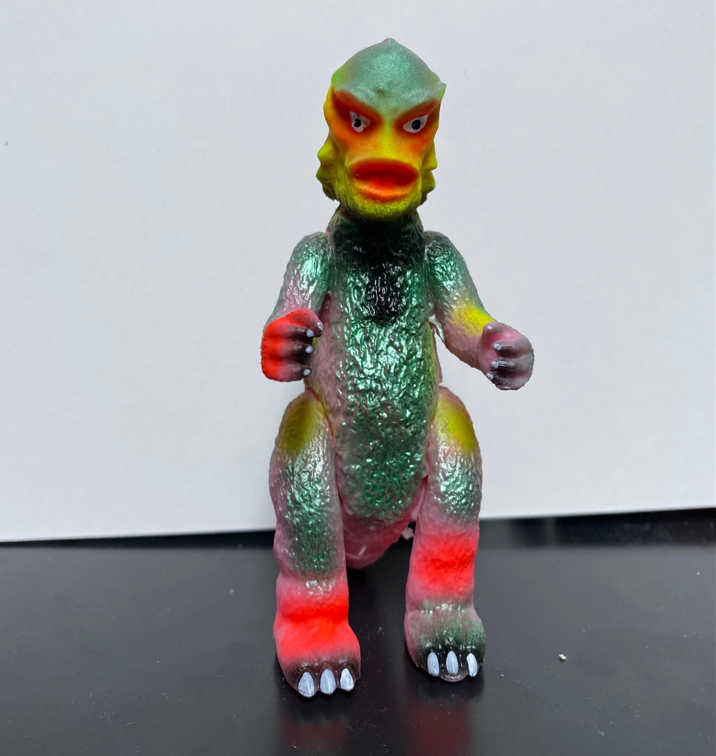 4.5" of scales rising out of the black lagoon to terrorize the neighborhood. Solid cast in pink resin and handpainted in classic bullmark color scheme creechzilla will fit right in with the rest of your cool collection.