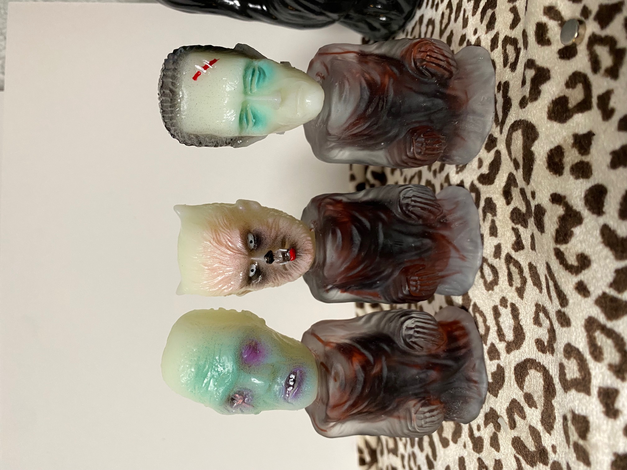 Classic ghoul body shrunk down 4", heads can be swapped. Most of my MOTU figure heads will also fit on these bodies. Cast in solid resin and filled with bugs and hand painted.