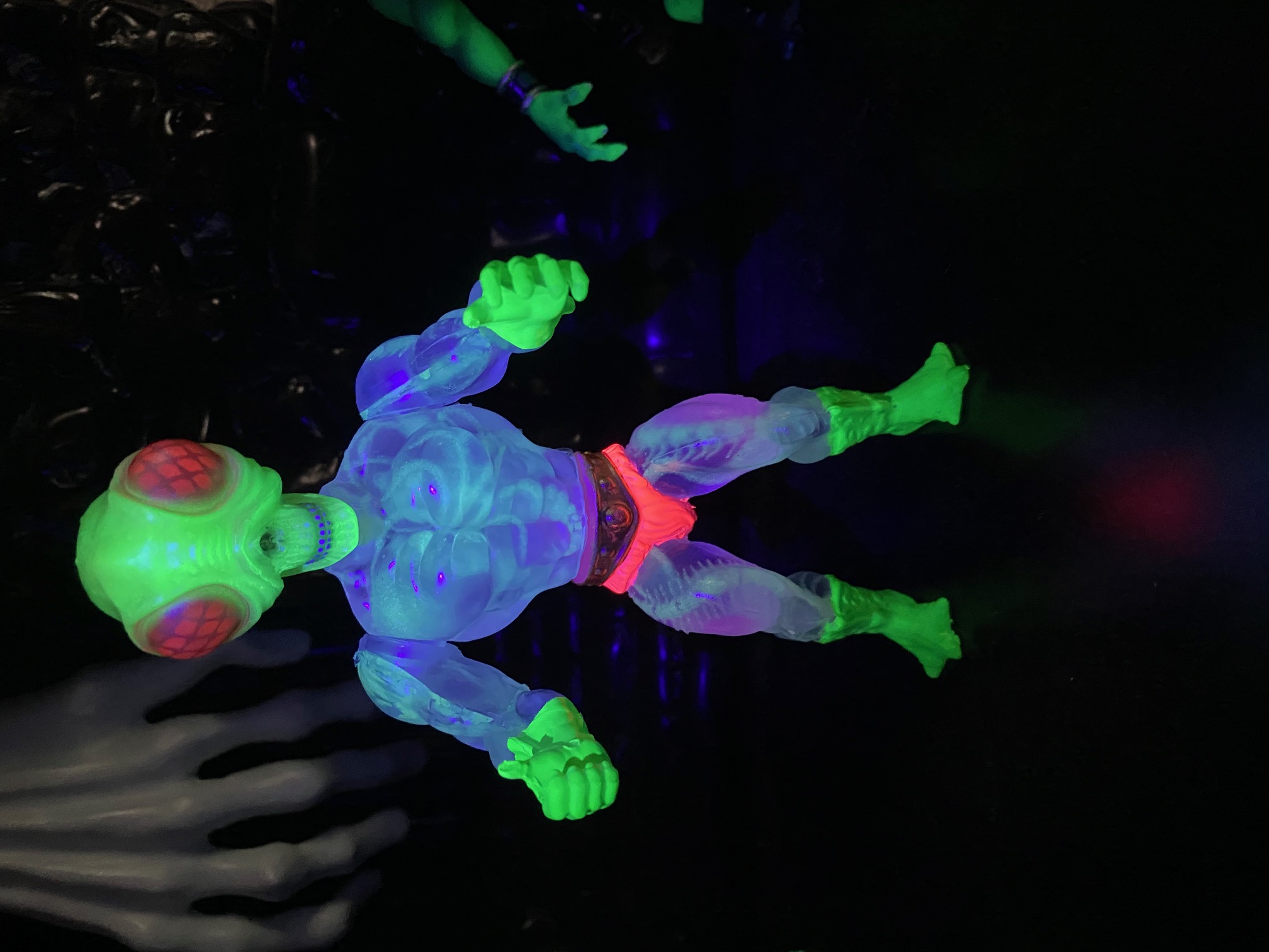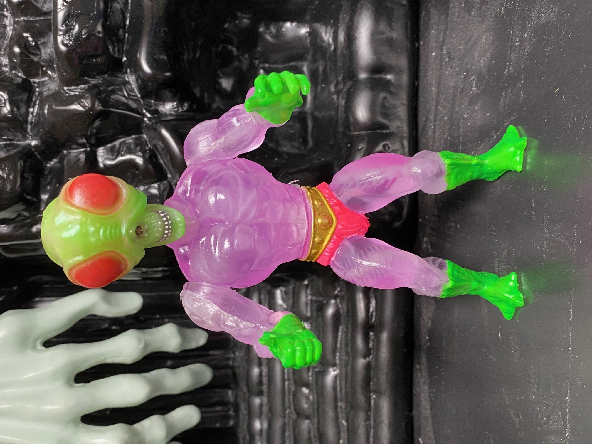Crystal clear full of vintage creepy crawlies with glow in the dark insect head. About 6" tall, 5 points of articulation. Hand cast and painted, comes on blister card. 1 of 1.