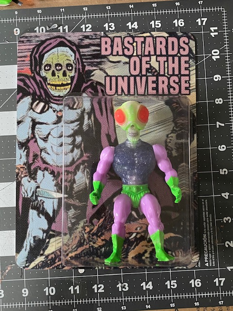 Speclatron body with a GID insect head. About 6" tall, 5 points of articulation. Hand cast and painted, comes on blister card.