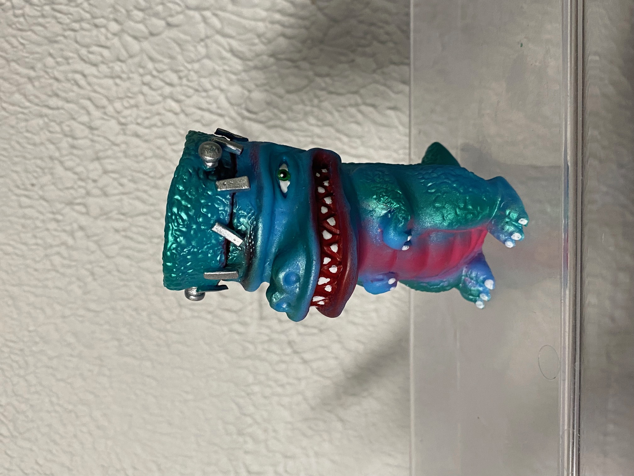 Creeping out of prehistoric times body of a monster, brain of a madman, come Prometheus Rex. Just under 3.5" tall, 3 solid cast resin pieces. Sculpted, cast and painted by me. Each one available at this time is a one off.
