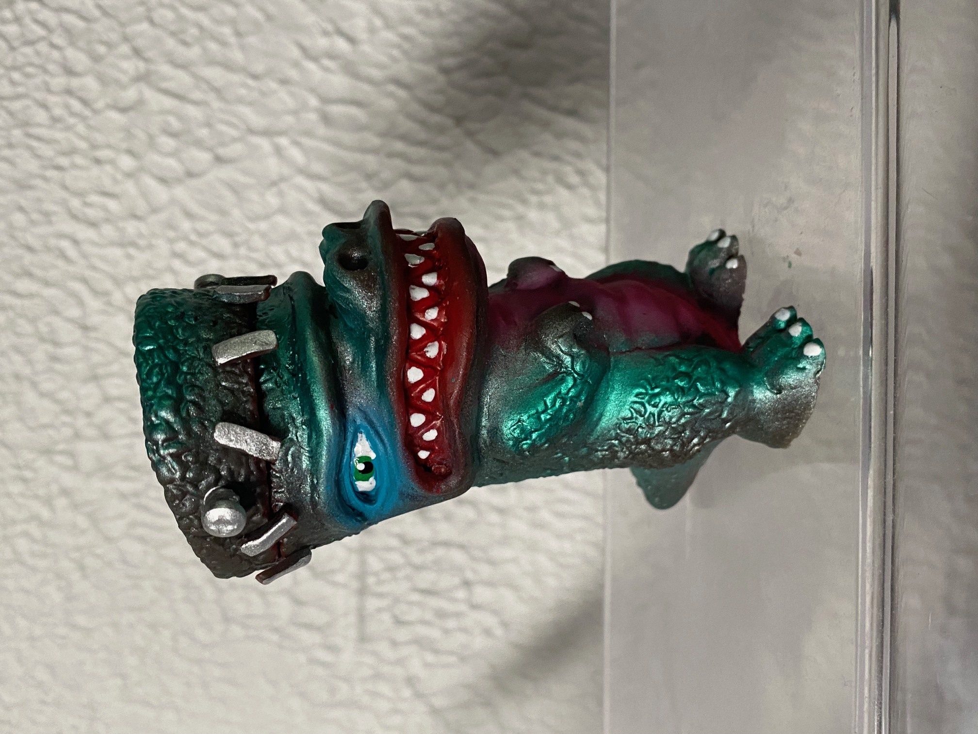 Creeping out of prehistoric times body of a monster, brain of a madman, come Prometheus Rex. Just under 3.5" tall, 3 solid cast resin pieces. Sculpted, cast and painted by me. Each one available at this time is a one off.